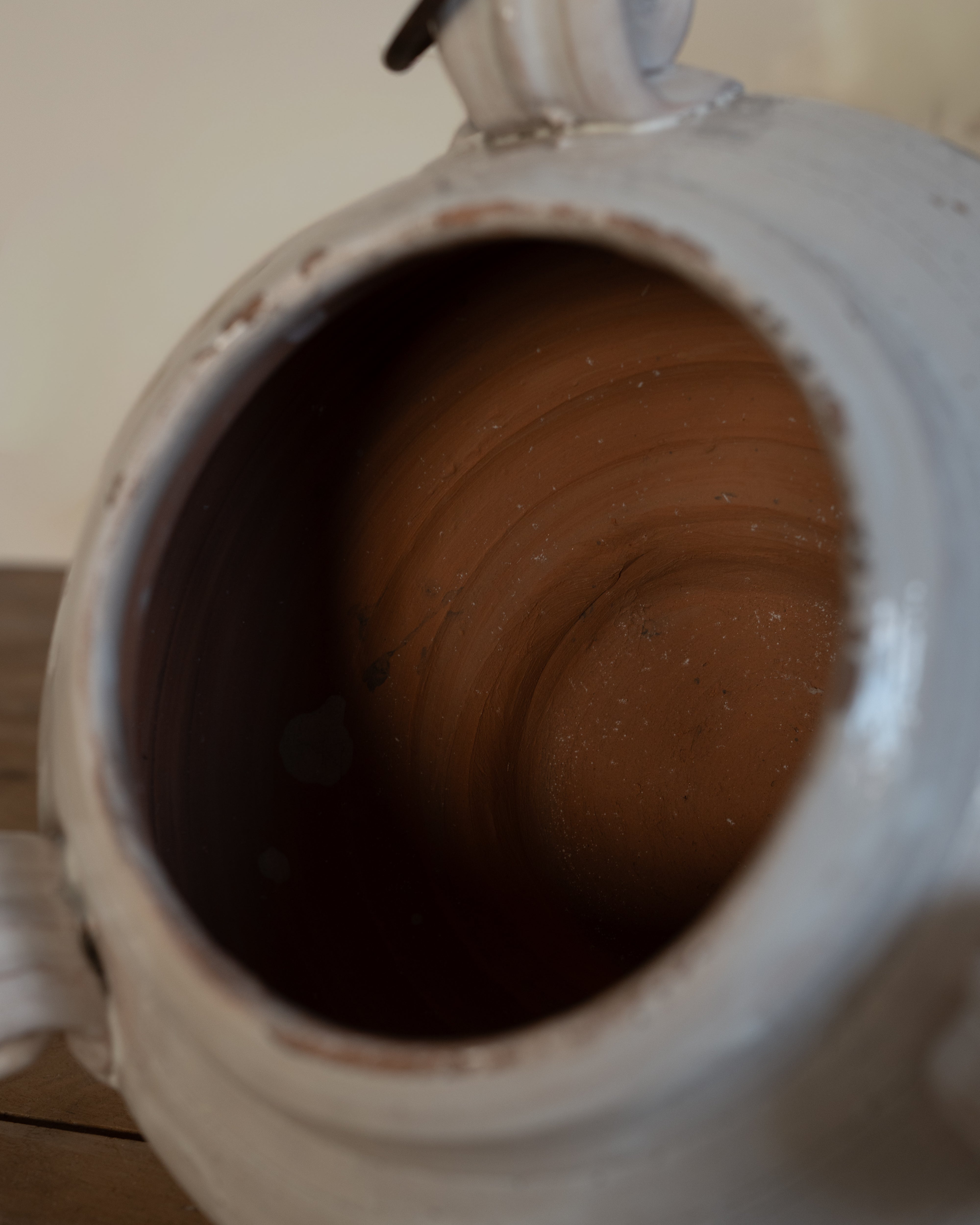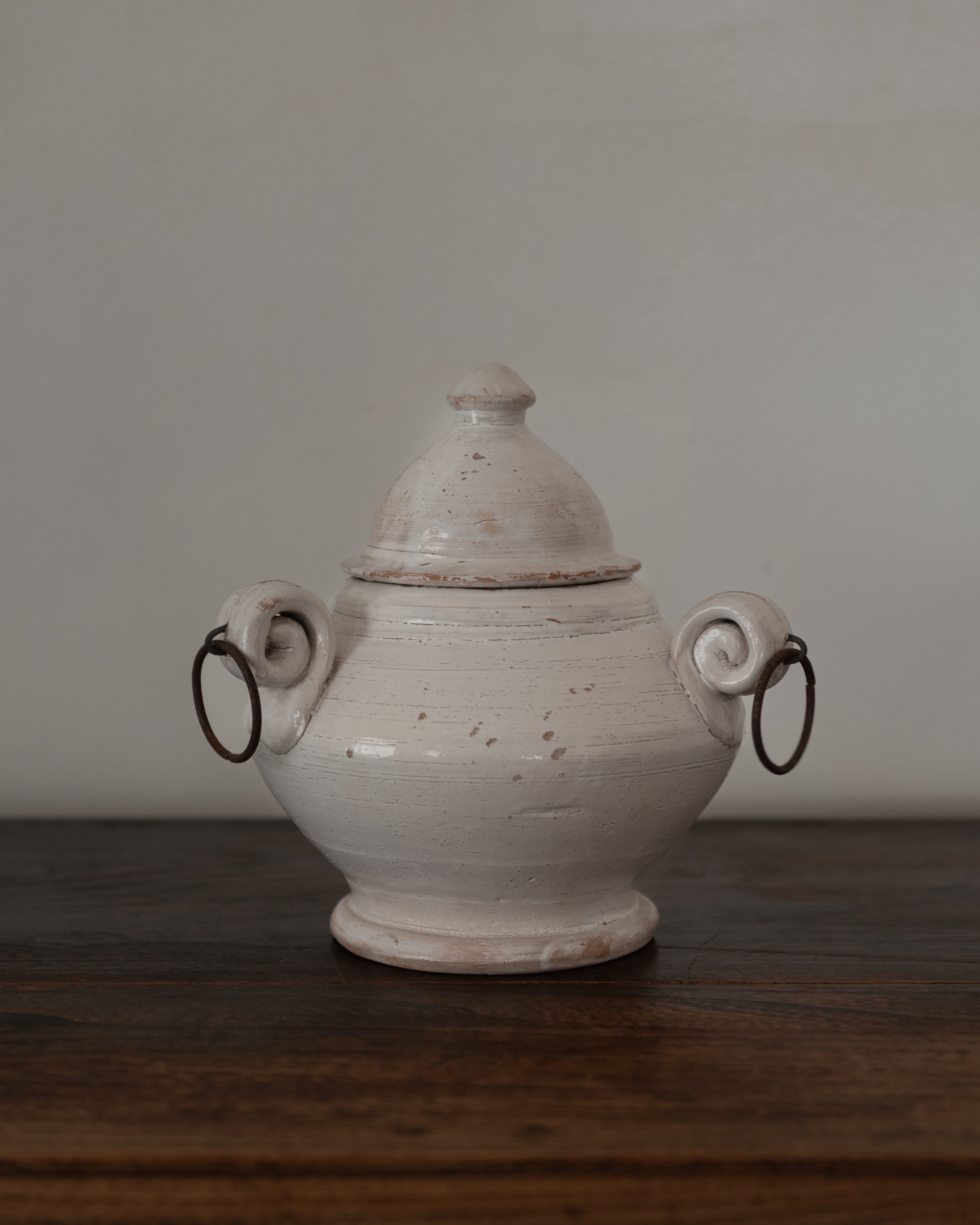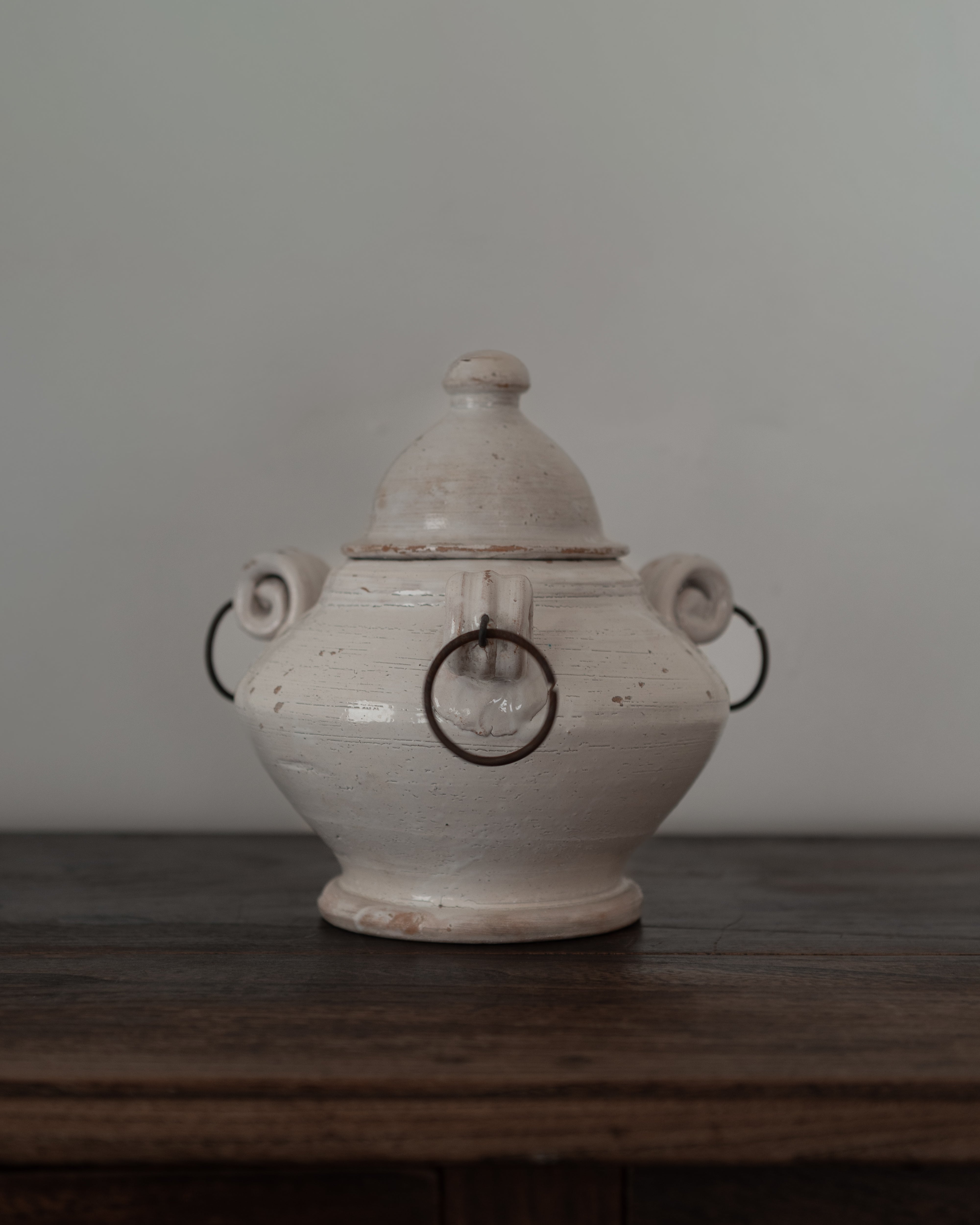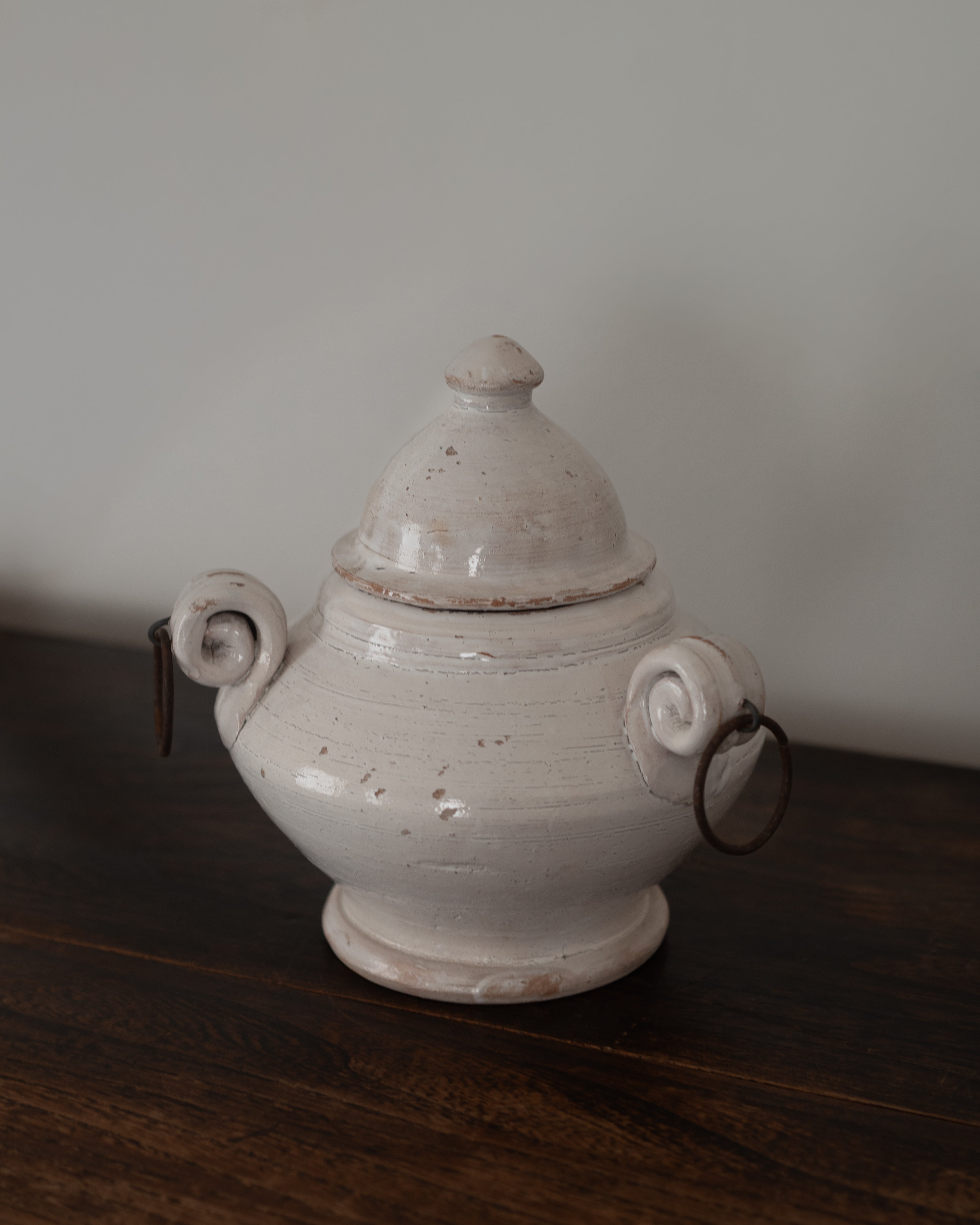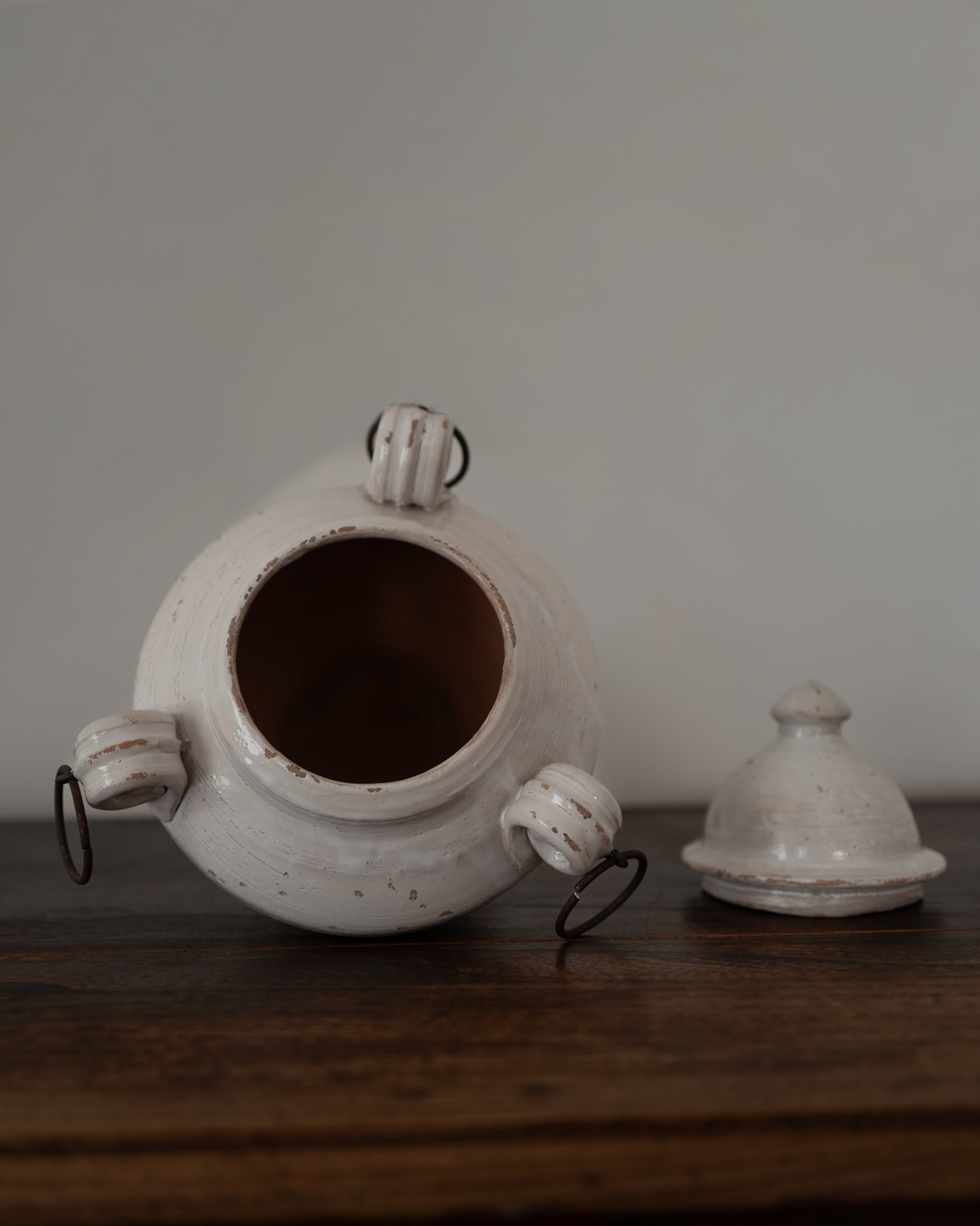 Italian Puglia White Glazed Storage Jar with Lid AN-5064